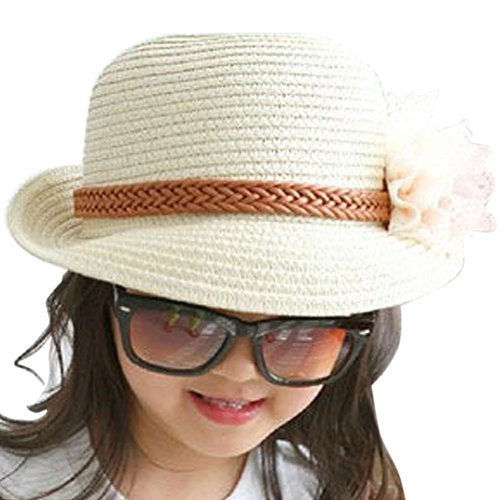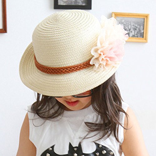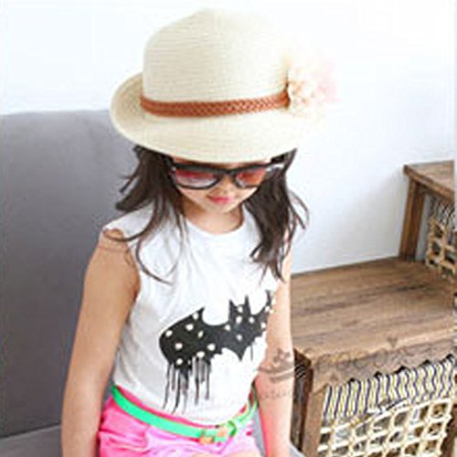 ARAUS キッズ 帽子 日よけ帽 サマーハット サンハット 紫外線対策 花付き ストロー 太陽 キッズ ベビー 女の子 男の子 誕生日 旅行 散歩 お遊び プレゼント ギフト 夏(2-10歳用) (2-10歳, ミルクホワイト)