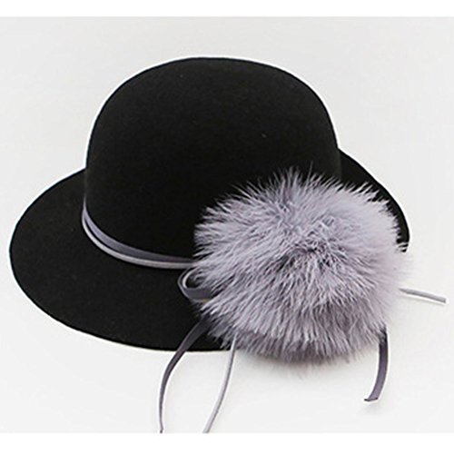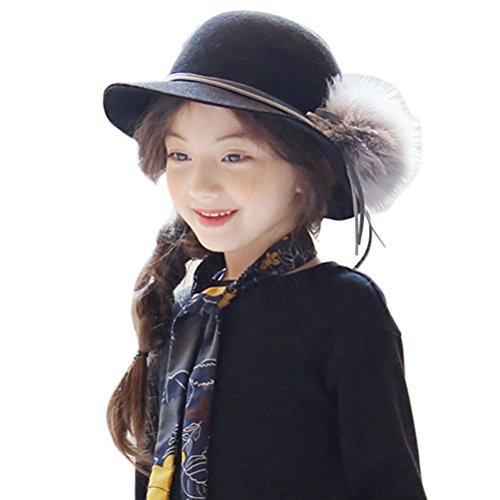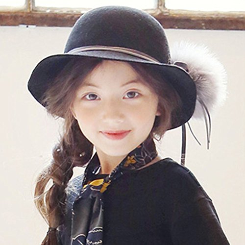 ARAUS 女の子 帽子 礼帽 けだま 丸い アーチ形 淑女 親子帽子 ウサギの毛 キッズ ガールズ 子供 ガールズ 室外 パーティー おしゃれ 優雅 美しい 春 冬(8-16歳用) (8-16歳, 黒い)