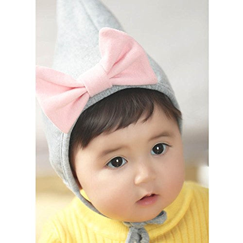 ARAUS こども 帽子 蝶結び 飾り 防風 保温 暖かい 耳あて付き 防寒 防水 純綿 がルーズ 女の子 魔法使い アクセサリ ハット ベビー 新生児 幼児 かわいい ふわふわ 外出 遊ぶ 秋 冬(3-12ヶ月用) (3-12ヶ月, グレー)