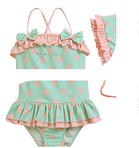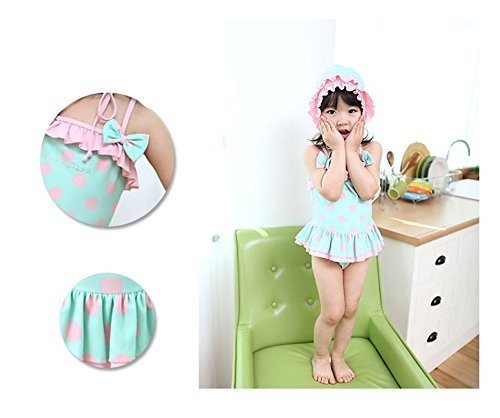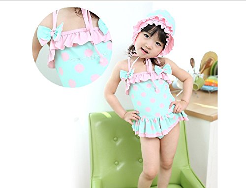 (アートップ)ARETOP™ベビー 子供 女の子 水着 ミズギ ビキニ タンキニ ワンピース式 水玉模様ドット フリフリ ブリー フリル 帽子付き スイムウェア スイミング プール 海水浴 オリジナル 護身用 【 65cm ~ 130cm 】身長対応 ファッション キュート(5T)