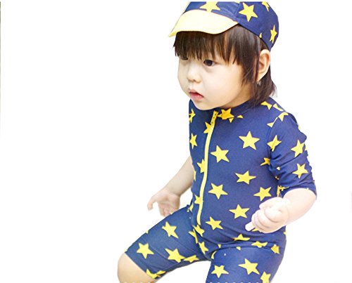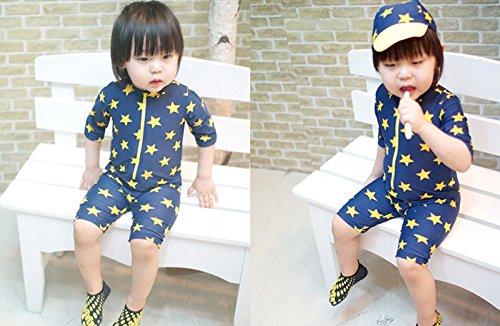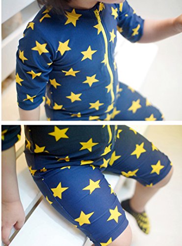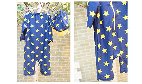(アートップ)ARETOP™超可愛い子供用水着 半袖 帽子付き 2点セット キッズ 男児 連体ラッシュガード 男の子 星柄 (5T)