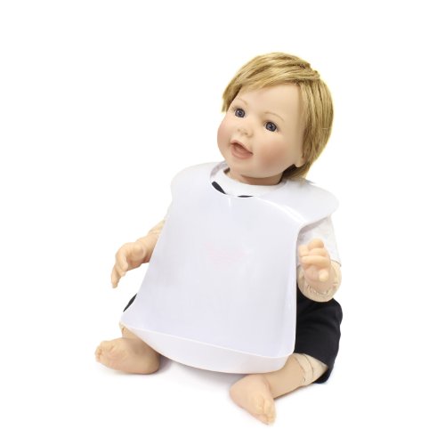 食べこぼしをキャッチするポケットが付いたキュートなベビーエプロン。汚れてもサッとひと拭きで汚れも落ちますのでママもラクラクです。※画像のロンパースは別売りです。