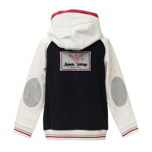ARMANI JUNIORのロゴがヴィンテージ風に描かれたクールなパーカーです。裏地はフリース加工されていますのでとても暖ったかです。お誕生日祝いやプレゼントに最適です。 商品番号QXB831WWHT カラーホワイト×ネイビー×グレー×レッド 素材コットン92% エラステン8% サイズ【6A】6歳用(身長:118cm 着丈:48cm 身幅:38.5cm 肩幅:ラグラン 袖丈:36cm)【8A】8歳用(身長:130cm 着丈:52cm 身幅:41cm 肩幅:ラグラン 袖丈:39cm) メーカー型番QXB83 1W F1