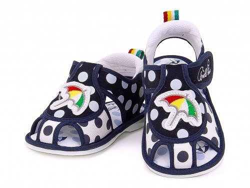 ドット柄が可愛らしいベビーサンダルは、歩くたびにぴよぴよと音が鳴る笛付き☆スポーツサンダルタイプで脱げにくく安心!マジックテープが大きく開くので脱ぎ履きも楽チンです♪笛は本体から取りはずすことができます。※展開サイズ:キッズ