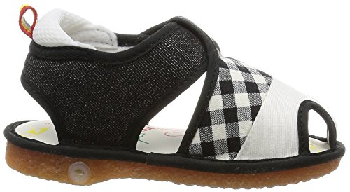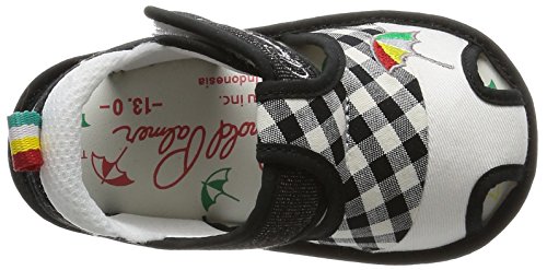 ロゴマークの傘がワンポイントのかわいいベビーシューズです。歩くたびに音が鳴る笛付き♪歩くのが楽しくなるサンダルです。 製造国:インドネシア 素材・材質:アッパー:コットンソール:PVC 商品サイズ:12.5cm 仕様:笛付