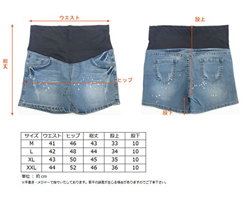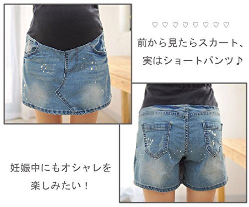 【MIKA&MAYA】 マタニティ デニム ショート パンツ スカート 風 ウェア 妊婦 ボトムス (Mサイズ)