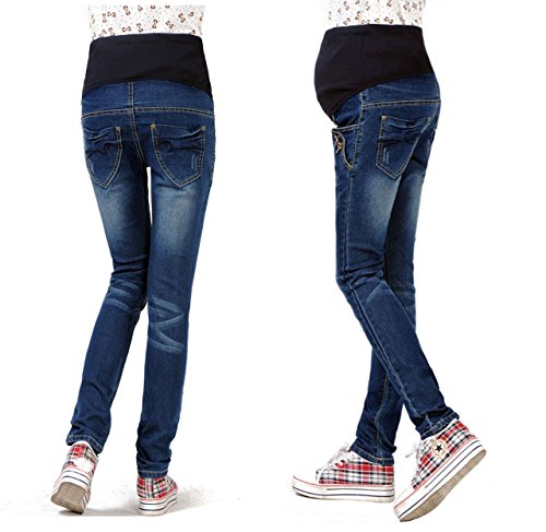 【MIKA&MAYA】 マタニティ デニム パンツ ジーンズ ボトムス レディース ウェア 妊婦 青 (L サイズ)