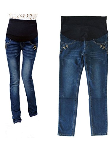【MIKA&MAYA】 マタニティ デニム パンツ ジーンズ ボトムス レディース ウェア 妊婦 青 (2XL サイズ)