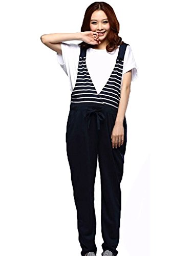 【MIKA&MAYA】 マタニティ サロペット スウェット ボーダー オーバーオール アジャスター (ネイビー XL)