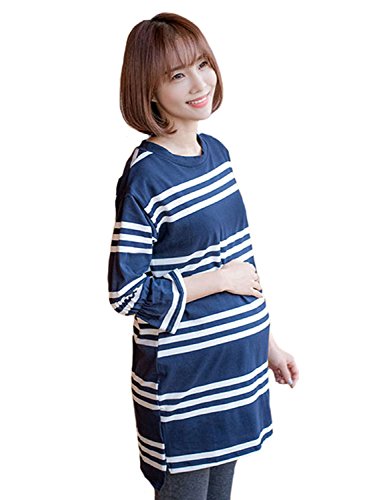 - ★マタニティ7分袖チュニック丈ボーダーシャツです。袖の絞りが女性らしいさり気ない可愛さを演出♪