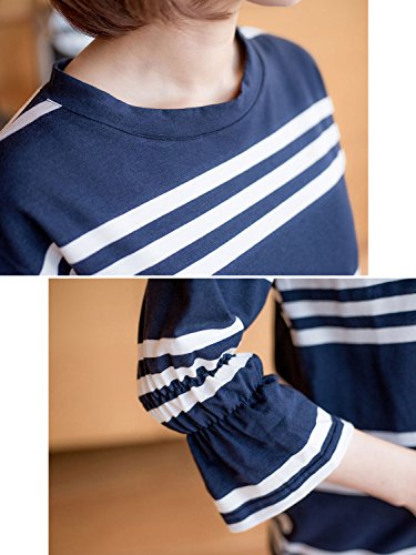 【MIKA&MAYA】 マタニティ Tシャツ チュニック ボーダー 7分袖 フレア シャツ ロンT
