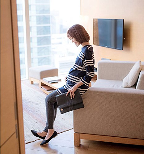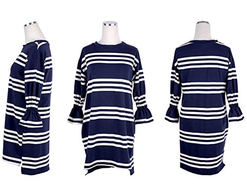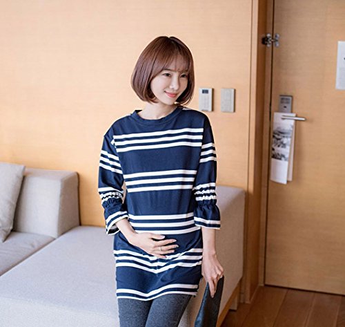 【MIKA&MAYA】 マタニティ Tシャツ チュニック ボーダー 7分袖 フレア シャツ ロンT (フリーサイズ, ネイビー)