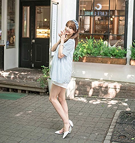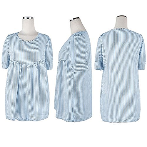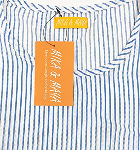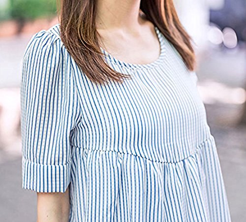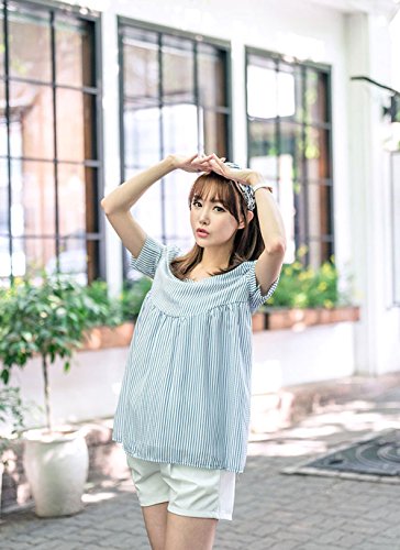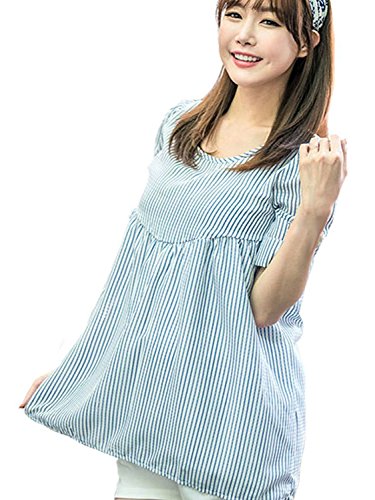 【MIKA&MAYA】 マタニティ 半袖 レディース ストライプ シャツ トップス Tシャツ ウェア (フリーサイズ, ブルー)
