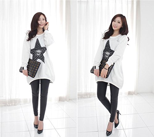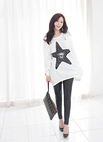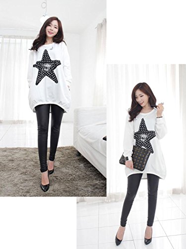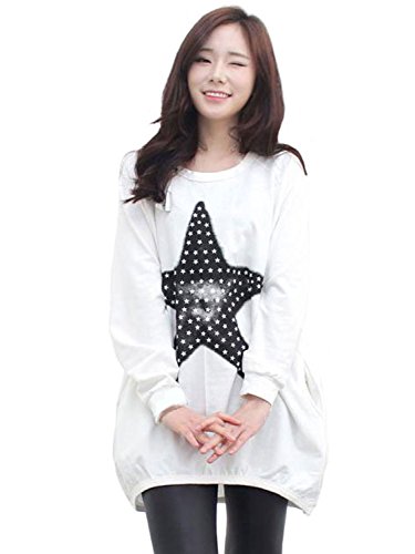【MIKA&MAYA】 星 マタニティ 長袖 トレーナー チュニック スウェット ロンT シャツ (ホワイト フリーサイズ)