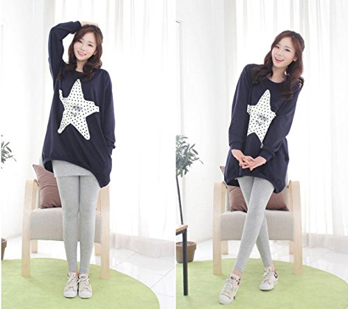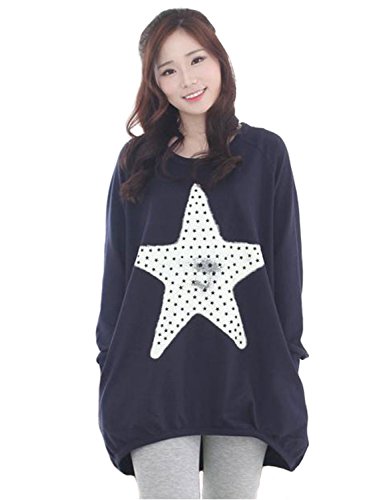【MIKA&MAYA】 星 マタニティ 長袖 トレーナー チュニック スウェット ロンT シャツ (ネイビー フリーサイズ)