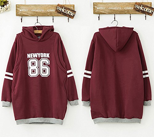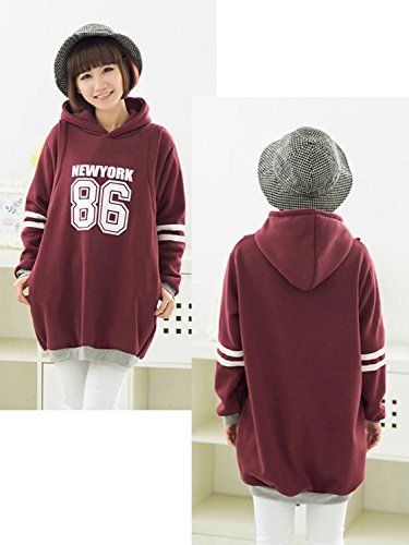 【MIKA&MAYA】 マタニティ トレーナー パーカー レディース トップス 長袖 授乳 スポーツ (フリーサイズ, ワインレッド)