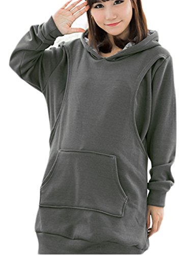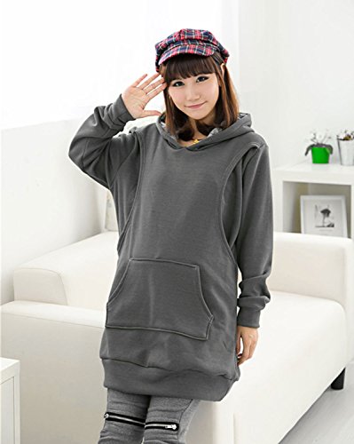 【MIKA&MAYA】 マタニティ パーカー トレーナー トップス 長袖 授乳 レディース ロング 妊婦 (フリーサイズ, ダークグレー)
