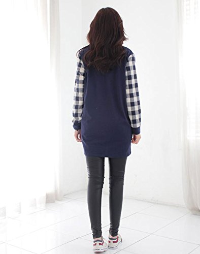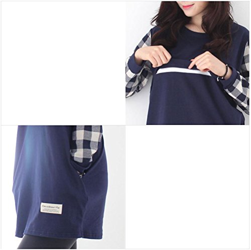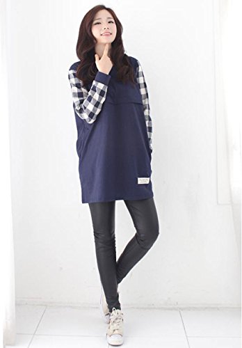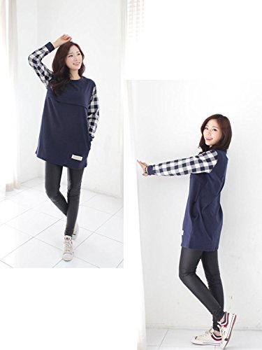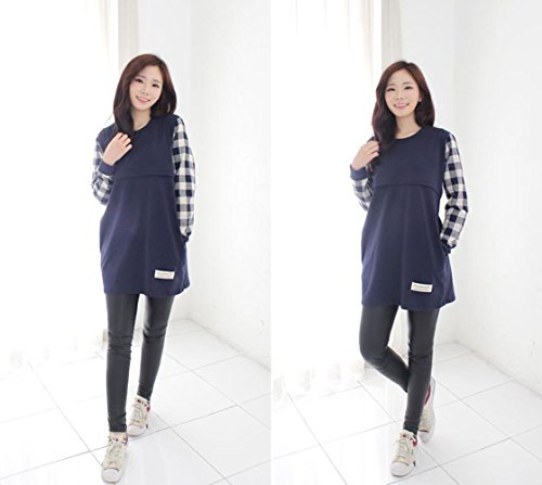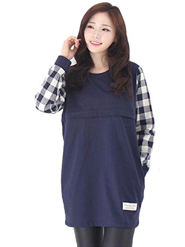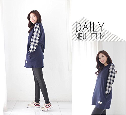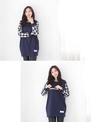 【MIKA&MAYA】 マタニティ 長袖 チュニック 授乳 服 チェック トレーナー 授乳口 付き (ネイビー フリーサイズ)