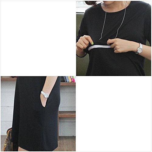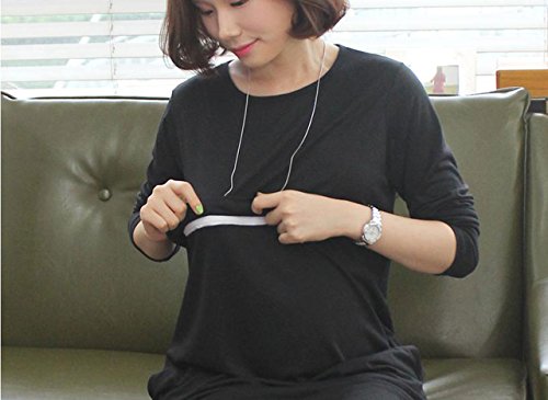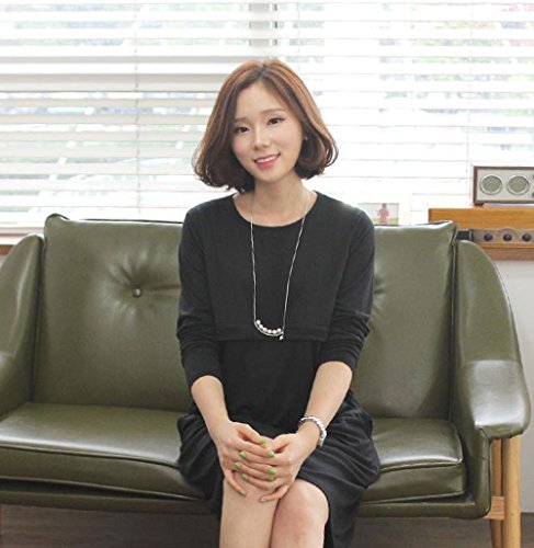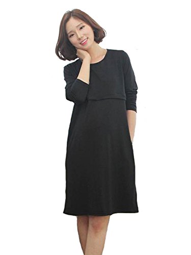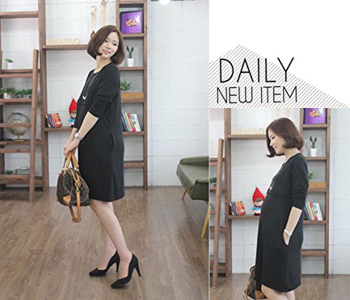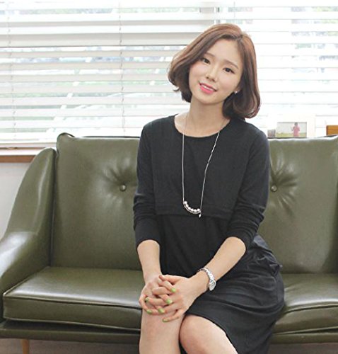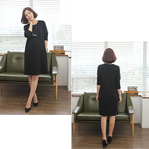 【MIKA&MAYA】 マタニティ 長袖 ワンピース 授乳服 フォーマル レディース 授乳口 付き (ブラック M)