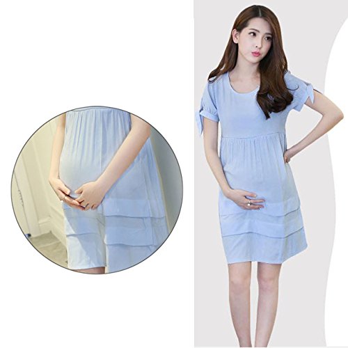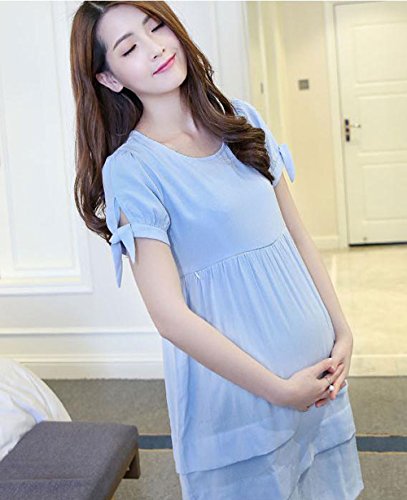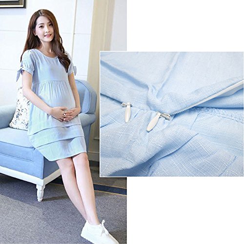 【MIKA&MAYA】 マタニティ 半袖 ワンピース 授乳口 付き レディース フリル 授乳服 (ブルー L)