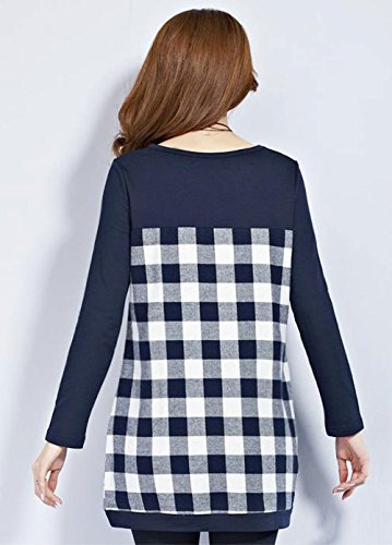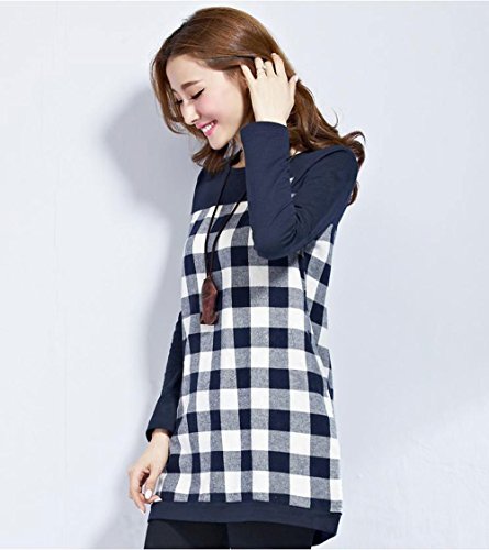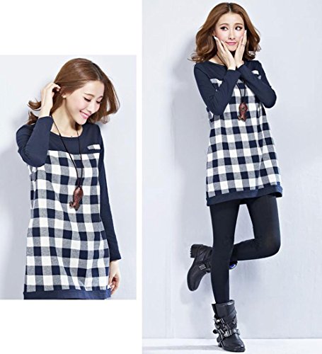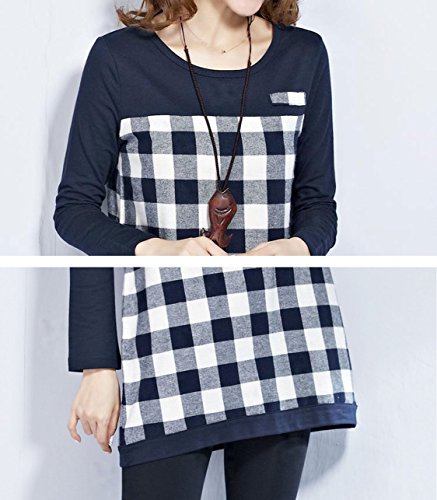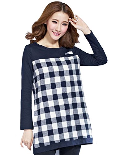 【MIKA&MAYA】 マタニティ 長袖 チュニック シャツ レディース チェック Tシャツ ロンT (XL, ネイビー)