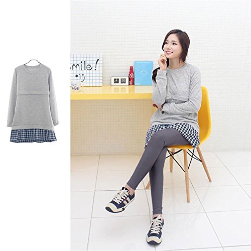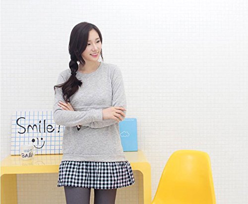 【MIKA&MAYA】 授乳 マタニティ 長袖 チュニック 授乳服 チェック 授乳口 付き (フリーサイズ, グレー)