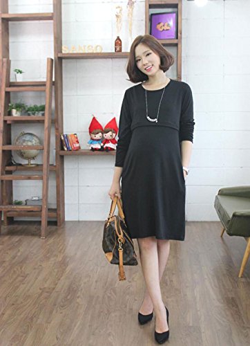 [MIKA&MAYA] マタニティ 長袖 ワンピース 授乳服 フォーマル レディース 授乳口 付き (ブラック XLサイズ)