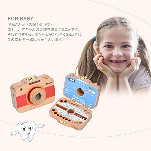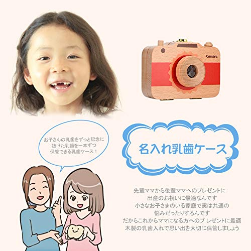 ASHATA 乳歯ケース 乳歯 ケース 乳歯入れ 乳歯入れケース 木製 名入れ 歯ケース 子供 歯 おもしろい 出産祝い プレゼント ギフト メモリアル 男の子 女の子 日本語表示シール ピンセットと脱脂綿付 防虫効果【カメラ型】