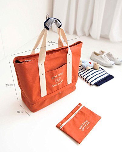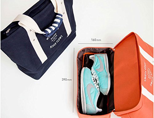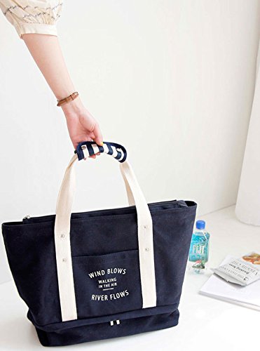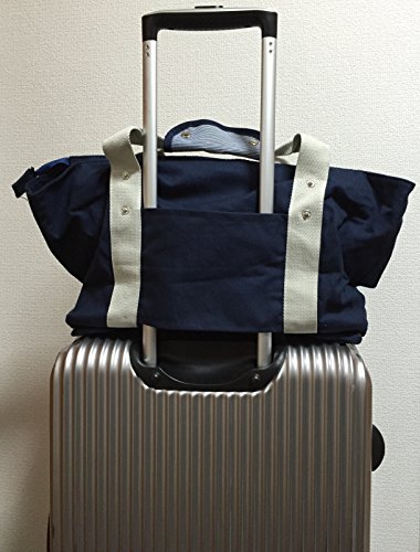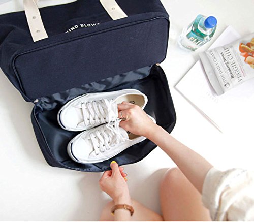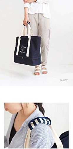 大容量 キャンバストートバッグ シューズ入れ ポーチ付 お出掛けカバン ネイビー