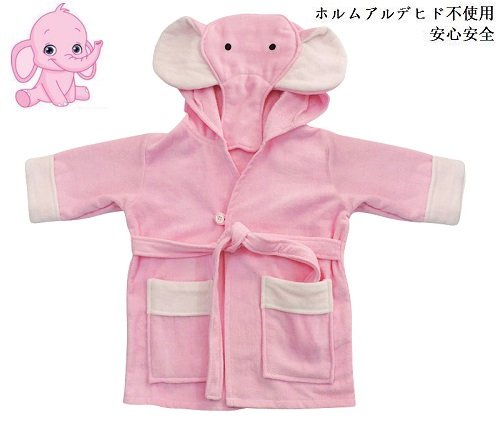ギフト プレゼント かわいい 象(ゾウ)さん 子どもバスローブ 2~4歳児用 フード、固定型のベルト、ポケット付き ボダン留め 高感度ハシマ二頭検針 安心安全 タオル地 着心地良い コスチューム100% バージン綿