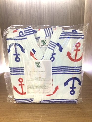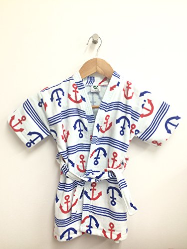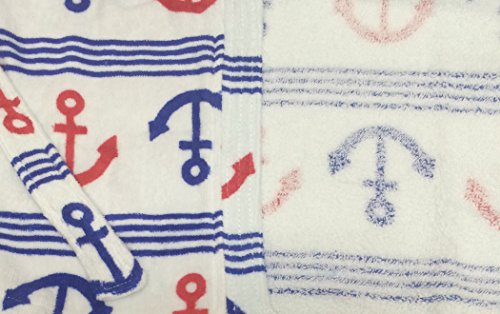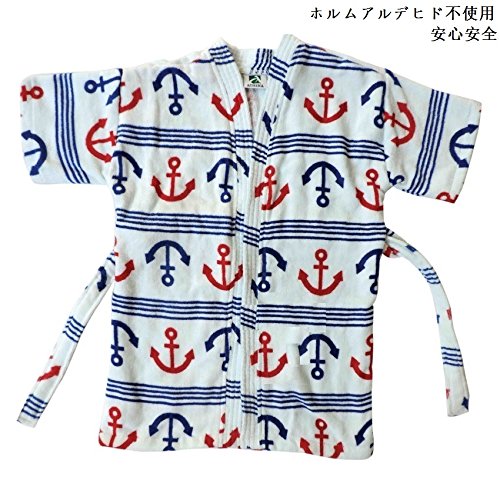 ギフト 子供バスローブ (90-100) ガウン 帯付き セーラー アンカー柄 固定型のベルト付き 高感度ハシマ二頭検針 安心安全 (100%バージン綿)