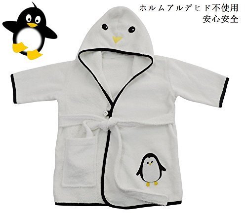 新春 ギフト キング ペンギン 子どもバスローブ フード、ベルト、ポケット付き ボダン留め 高感度ハシマ二頭検針 安心安全 タオル地 着心地良い 出産祝い 100%バージン綿 (100-120(4~6才))