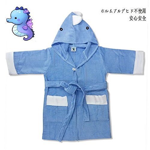 新年 ギフト タツノオトシゴ 子どもバスローブ フード、ベルト、ポケット付き ボダン留め 高感度ハシマ二頭検針 安心安全 タオル地 着心地良い 出産祝い 100%バージン綿 (100-120)
