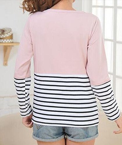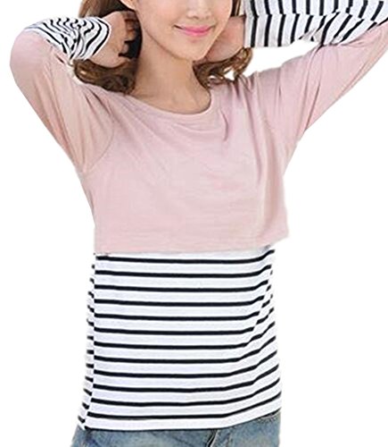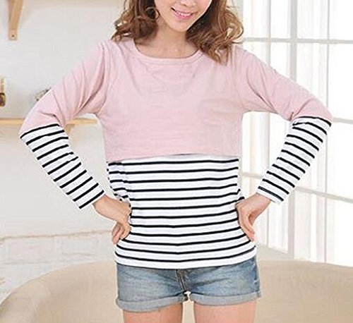(オーセンティック) AUTHENTIC マタニティ 授乳服 授乳口 付 トップス Tシャツ ボーダー 授乳 綿 カジュアル (XL, ピンク)