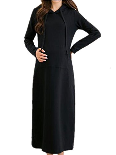 (オーセンティック) AUTHENTIC マタニティ ウェア ワンピース トップス ロング丈 妊婦服 ゆったり 産前 産後 (L, ブラック)