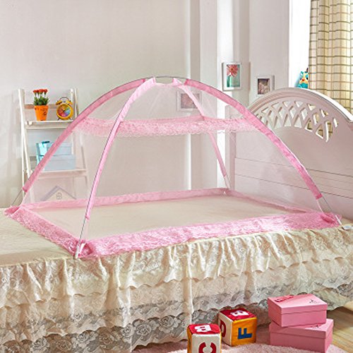 AUTOINBOX 蚊帳 ベビー キッズ ワンタッチ蚊帳 縦90×横120×高さ80cm 赤ちゃん 子供 (ピンク)