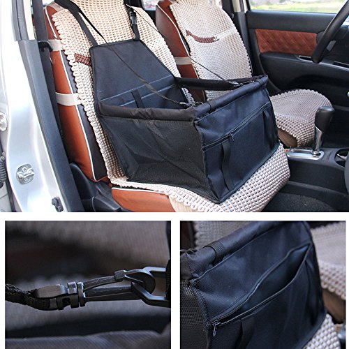 autoinbox ペット用 防水シートドライブボックス 犬 猫 飛び出し防止フック付き 車載用 通気デザイン (ブラック)