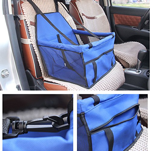 AUTOINBOX ペット用 防水シートドライブボックス 犬 猫 飛び出し防止フック付き 車載用 通気デザイン (ブルー)