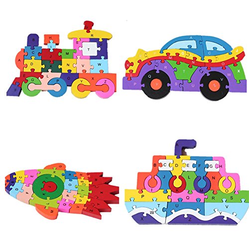 積み木 木製 知育玩具  数字 図形認識 4枚セット (車)