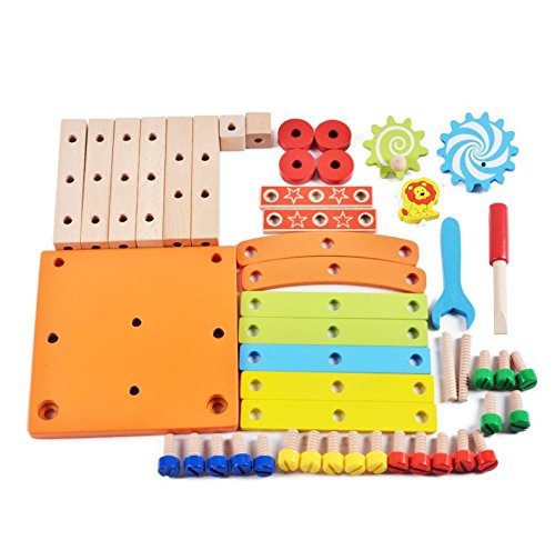 - 色々な道具を使って付属のパーツを自由に組み立てることができます。創造力を育てらる知育玩です。
