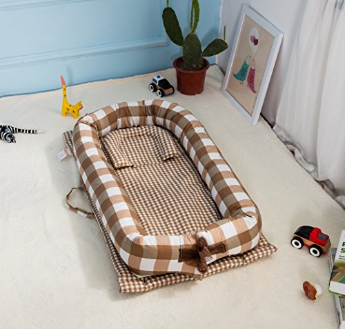 ベッドインベッド 添い寝ベッド おむつ換え ベビーベッド ベッドガード 枕付き (ブラウン)