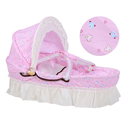 ベッドインベッド 添い寝ベッド おむつ換え ベビーベッド 持ちやすい 揺りかご 枕と毛布が付き (ピンク*熊)