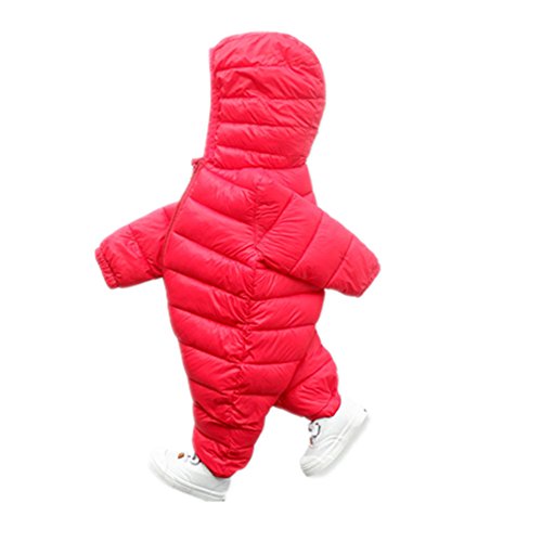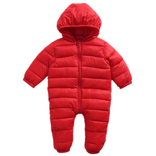 ベビー服 ロンパース 連体服 冬服 男女兼用 出産祝い (90cm, レッド)