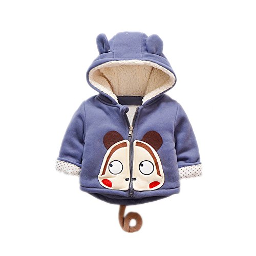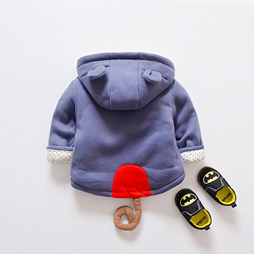 コート アウターウエア ベビー服 キッズ 子ども フード付き 防寒裏起毛 男女兼用 かわいい尾と耳 (80cm, ブラック)