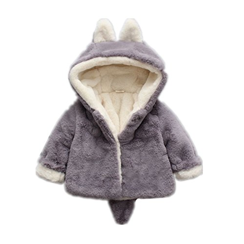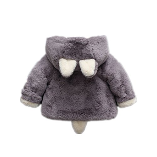 コート アウターウエア ベビー服 キッズ 子ども フード付き 防寒裏起毛 ウサギ 耳 男女兼用 (70cm, グレー)