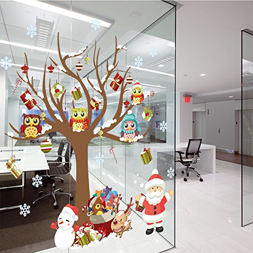 Merry Christmas Santa Cluas Gifts Snowman Olws Christmas Tree Removable Wall Stickers For Shop Window Glass Showcase Kids Nursery Girls and Boys Room Living Room Bedroom [並行輸入品]