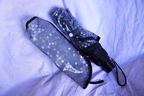 ドット柄 ビニール傘 折り畳み傘 視界 良好 ケース 携帯 軽量 撥水 コンパクト (ブラック)