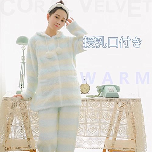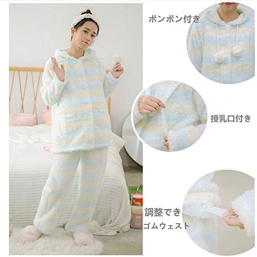 (アビコ)ABICO マタニティ 冬 可愛い フランネル 授乳パジャマ ボーダー柄 授乳服 授乳口付き 前開き ウエスト調節 あったか 厚手 部屋着 ルームウェア 上下セット