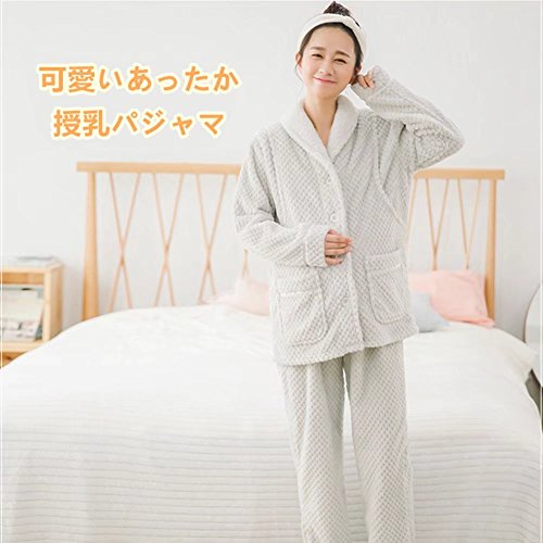 (アビコ)ABICO マタニティ 冬 可愛い フランネル 授乳パジャマ ボーダー柄 授乳服 授乳口付き 前開き ウエスト調節 あったか 厚手 部屋着 ルームウェア 上下セット