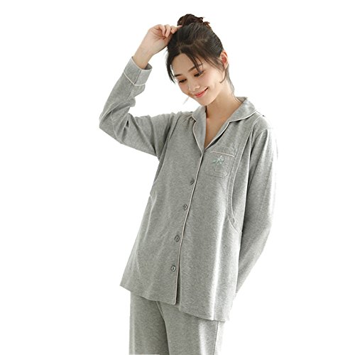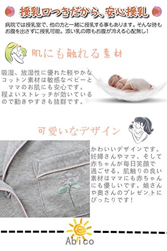[アビコ]ABICO エレガント マタニティ パジャマ 春夏 花刺繍 ポケット 無地 長袖 折り襟 綿 授乳服 授乳口付き ウエスト調節 通気性良い 産前 産後 妊婦 前開き